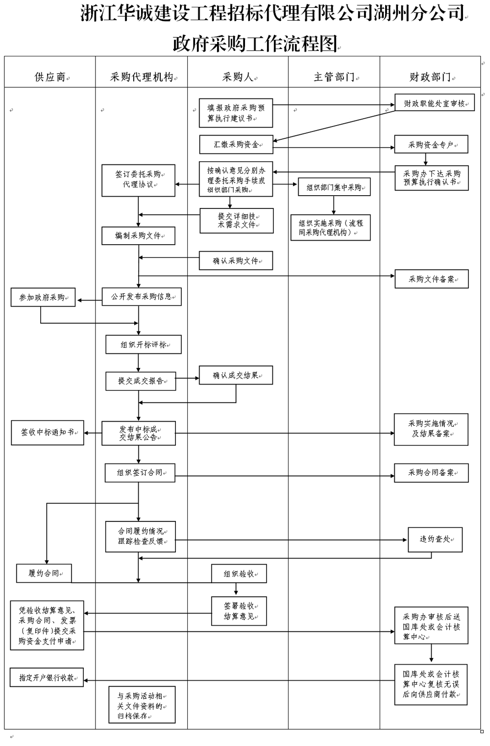 浙江華誠建設(shè)工程招標代理有限公司湖州分公司政府采購工作流程圖.doc